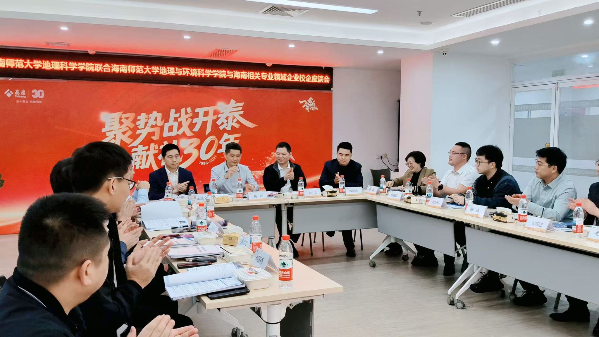 (供稿人 熊永欣)为深入贯彻落实教育部关于高校毕业生就业工作的决策部署,深化产教融合,开拓优质就业岗位,助力毕业生高质量就业,12月25日下午,院党委副书记张义(主持工作)带领学工办辅导员一行赴海口开展访企拓岗专项活动。此次活动与海南相关专业领域企业开展校企座谈会,就校企协同育人、实习就业基地建设、产学研合作等展开深入交流。五矿二十三冶建设集团有限公司海南分公司、海南省工程咨询设计集团有限公司、中规院海南分公司规划一所、海南驰大建筑工程有限公司、海口市第一中学等企业与校友代表等13家企业参加座谈会。座谈会由湖南师范大学地理科学学院1996级校友、湖南师范大学海南校友会会长曾标志主持。