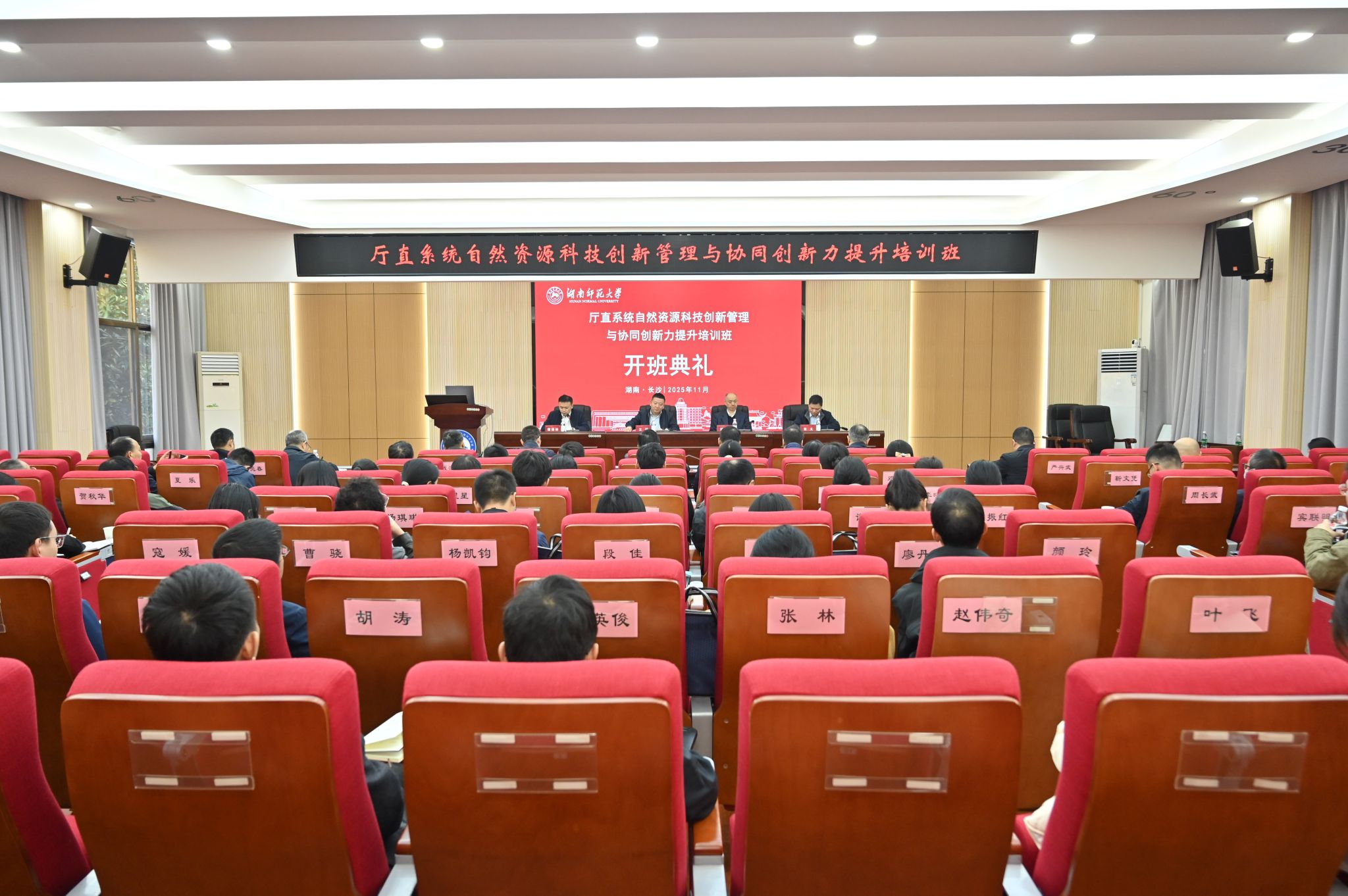 (供稿 秦雅静)11月27日上午,厅直系统自然资源科技创新管理与协同创新力提升培训班开班典礼在我院301报告厅举行。湖南省自然资源厅二级巡视员王群,我校党委委员、副校长杨震,我院党委副书记(主持党委日常工作)张义,以及来自湖南省自然资源系统的64位学员出席了典礼。典礼由湖南省自然资源厅改革发展与科技处处长谭译林主持。
