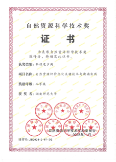 (供稿 王华)近日,自然资源部公布2024年度自然资源科学技术奖获奖成果。由湖南省国土资源规划院牵头、湖南师范大学地理科学学院参与完成的“自然资源评价优化关键技术与湖南实践”项目,荣获自然资源科技进步奖二等奖。