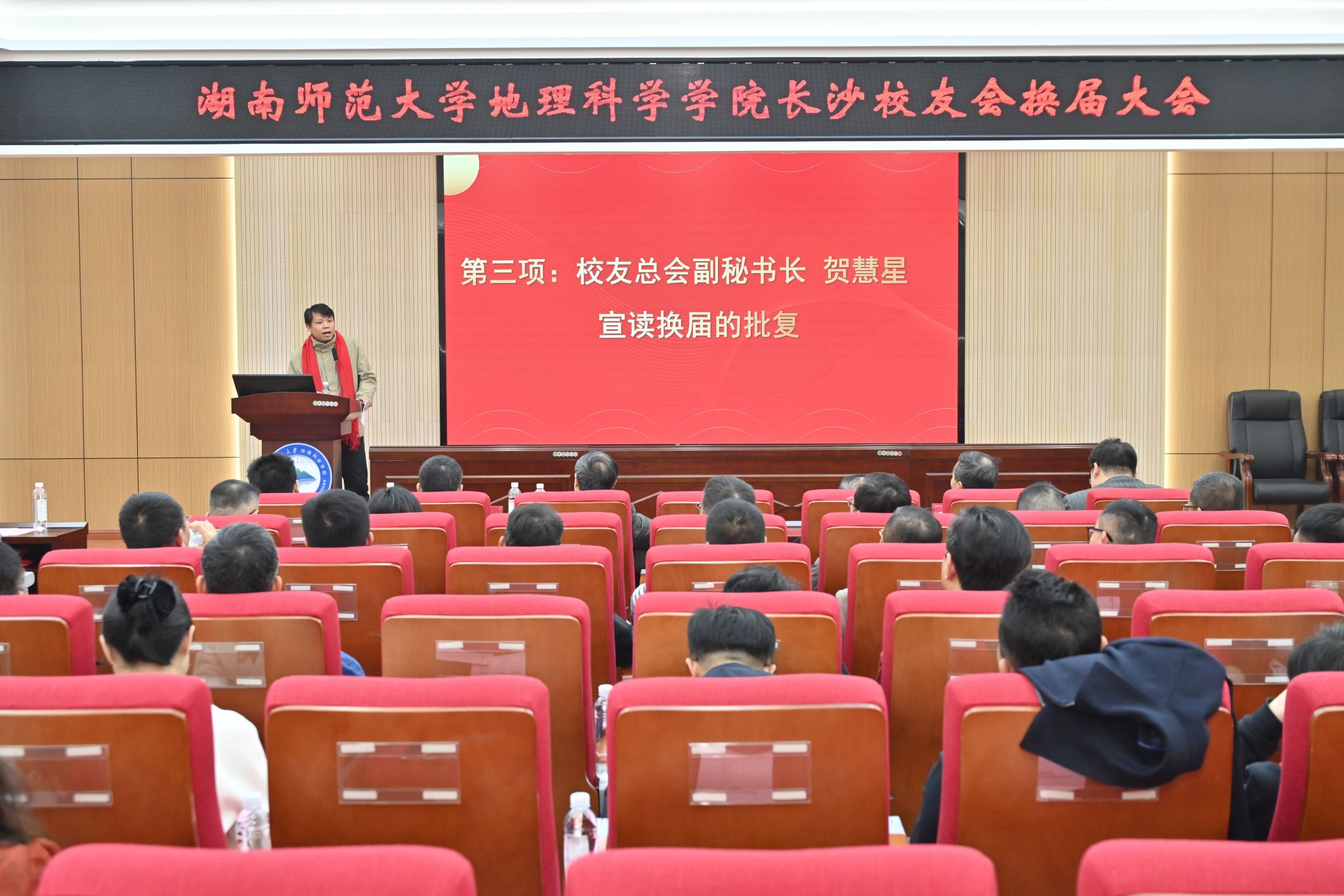 (供稿 杨惠君)1月17日,湖南师范大学地理科学学院长沙校友会第二届换届大会在地理科学学院301报告厅隆重举行。学校校友总会副秘书长贺慧星、院长周国华、院党委副书记(主持工作)张义、副院长李忠武、饶志国、王磊、第一届校友会理事会会长李景保及各界校友代表齐聚一堂,共话校友情谊,共绘发展新篇。大会由2015级校友谭蕾主持。